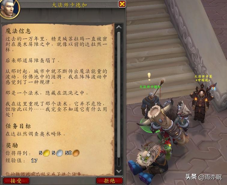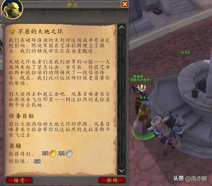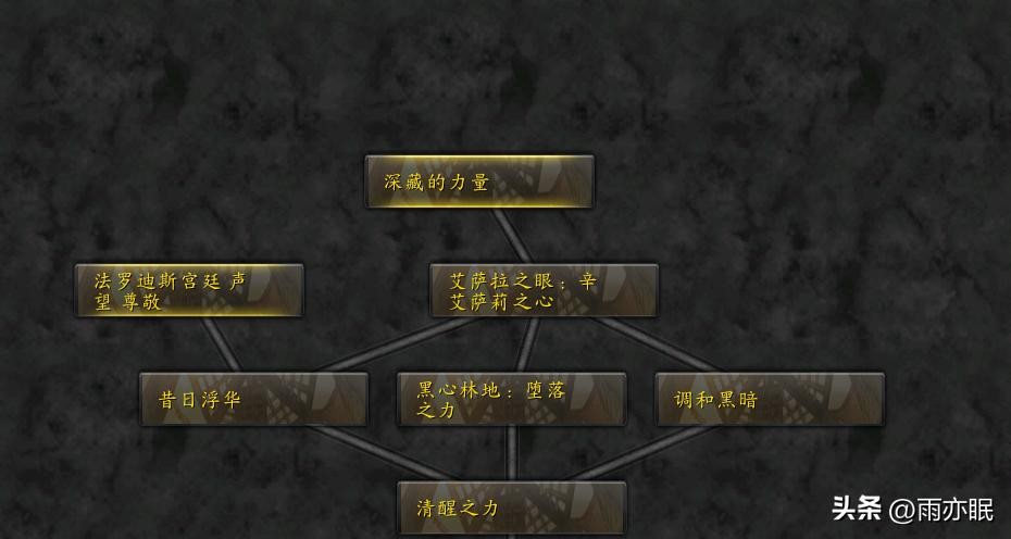 这时候不需要其他条件,可以先完成:艾萨拉之眼和黑心林地的史诗副本任务,而副本以及世界任务获得的萨格拉斯之血千万不要卖掉,因为【调和黑暗】任务需要30个。这时候会被声望卡住,我们先去做后面步骤。