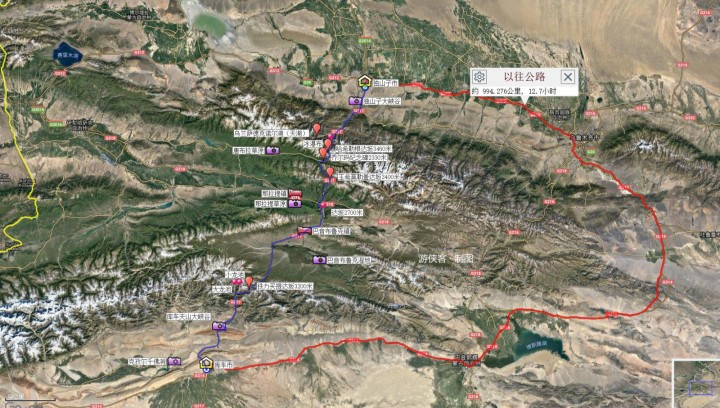 从独山子出发,一路盘山公路,需要经过【哈希勒根达坂】(3460米),【玉希莫勒盖达坂】(3400米),沿途急弯、隧道、涵洞比较多,经常会因为降雨降雪,雪崩等恶劣天气,临时封闭。