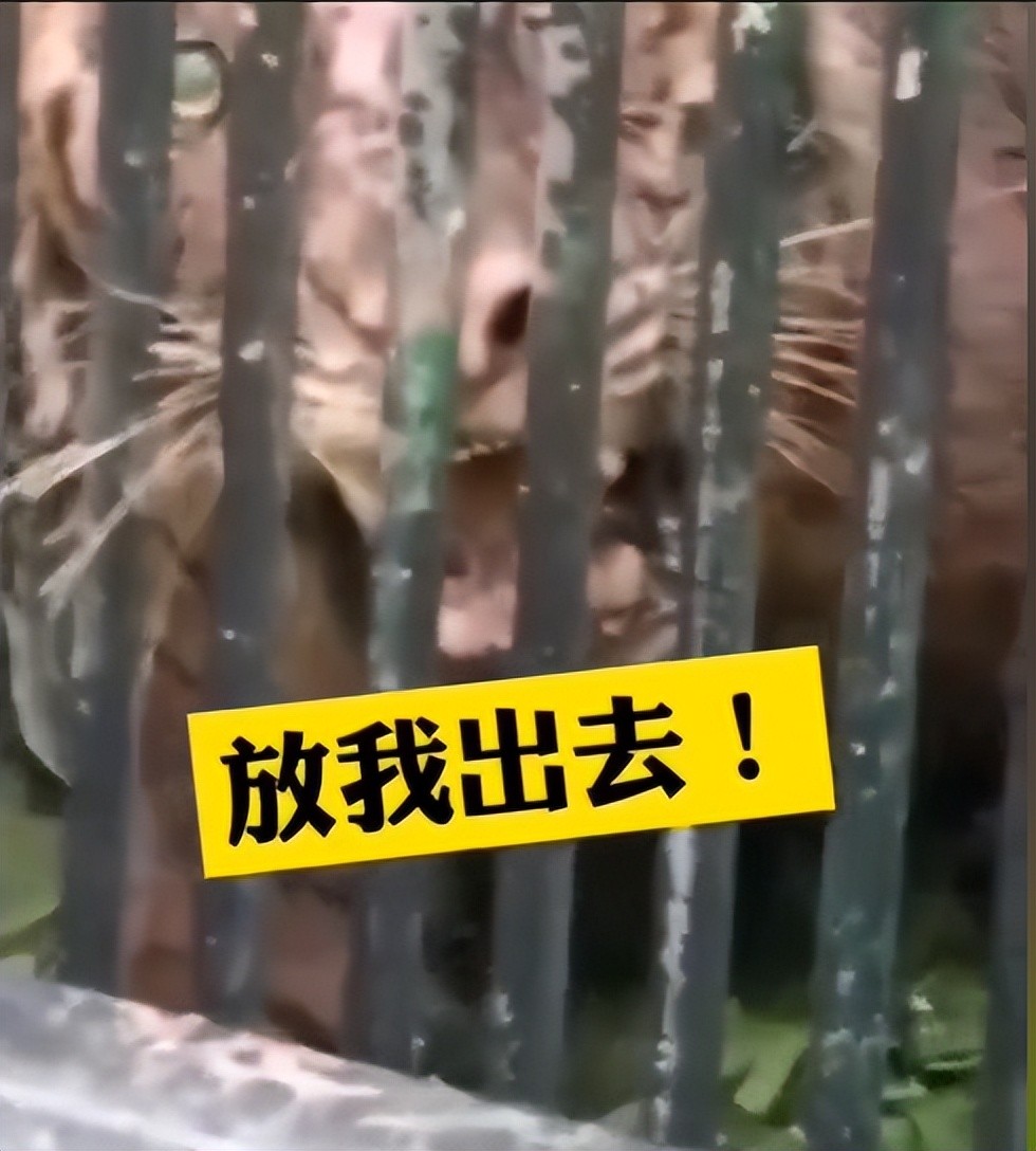 从视频的画面可以看到,这头老虎被关在笼子里,仍余威未减,瞪着浅碧双眼,对着围观拍照的人群龇牙咧嘴,发出阵阵咆哮。