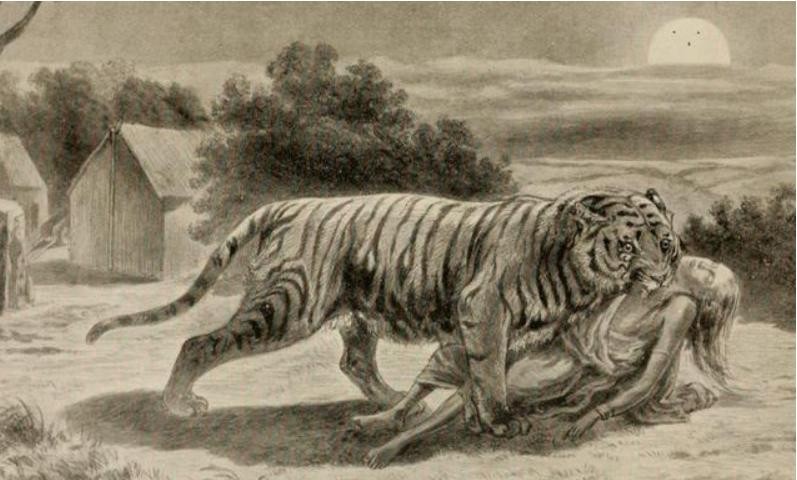一次偶然的机会,这只雌虎误伤了一位在割草的妇女,当时并没有将其吃掉,几天后,它直接杀死一名伐木工人,从此真正变成食人虎,一共杀死26人。