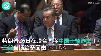 特朗普说中国干预他选举了,王毅肩膀一耸,给你个小眼神,你自己一边体会去。
