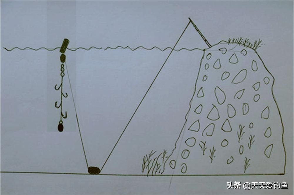 完全不知道怎么称呼这种钓组,可以详见下图。这种钓法首先也是通过一个活铅来固定住钓组,以达到钓浮时钓组不会偏移钓点的情况出现。其次是这种串钩钓组在水中是反向的,因为通常来说钓组到位之后铅坠都是在下方的,而这种钓组的铅坠在串钩的上方。串钩取下铅坠,主线串上一个活铅,原本的末端链接主线。在串钩的另外一个方向,增加大小合适的铅坠和球形漂,这样钓组就能完全悬浮在半水中。从垂钓水层来看,其实跟方法二没有太大的区别。