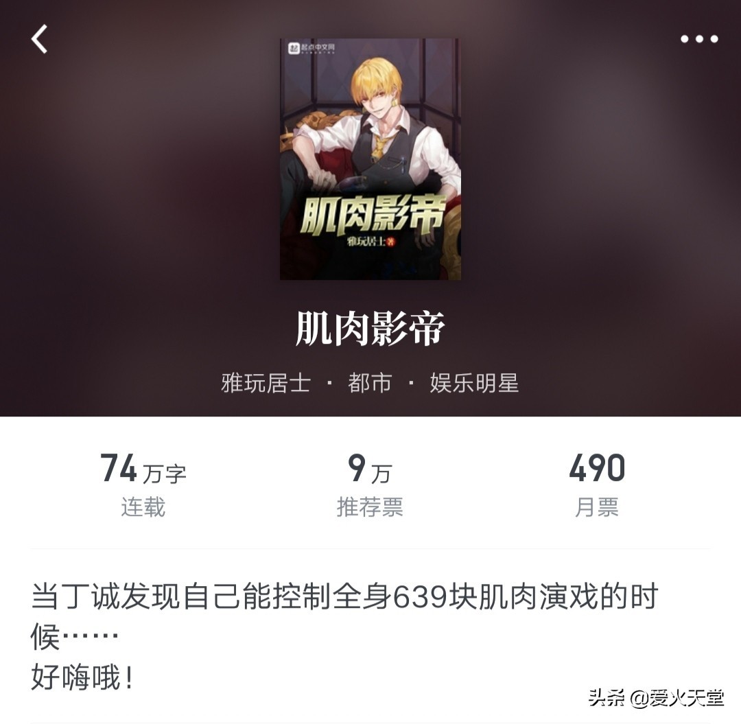这本《肌肉影帝》算是近期的华娱爆款文,成绩方面很不错。其中的犀利吐槽也很有《生于1984》内味,只不过主角不算偶像小鲜肉,作者的说法是“长得一般”。其中演技方面的描写也还行,定位是“老干部”。