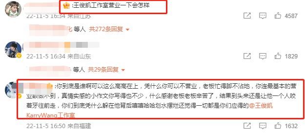 粉丝回应到更多的是维护偶像,但也并不代表艺人本人自己的意愿,工作室代表的是公司决定,本人则是个人想法,而通过王俊凯和工作室的状态能看到,无论是王俊凯本人还是工作室,现在都还在正常工作运营,有没有准备退圈的动作。