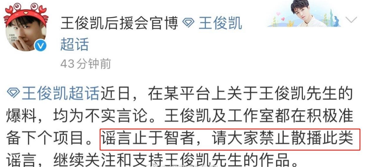 TFboys被曝解散,王俊凯疑要退圈?后援会辟谣,工作室未回应