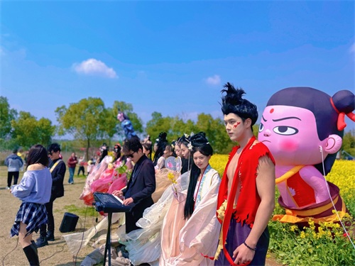 “16日、17日,景区精彩活动接连不断。主打让传统文化与国潮IP交织,花神祈福与哪吒‘闹春’碰撞,为市民奉上一场沉浸式的春日盛宴。”梁湖漫乡景区相关工作人员介绍,不仅有十二花神汉服走秀、乐队表演、春日市集,还有“哪吒降龙”迷宫挑战、哪吒护花挑战赛、DIY花艺体验、短视频挑战赛等互动活动。