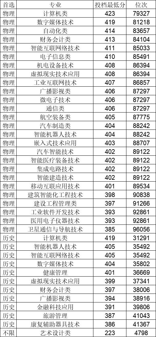 重庆电子工程职业学院2023年在重庆录取分数如下: