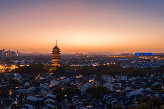 “在虎丘塔下,看古老的苏州静静流淌。”