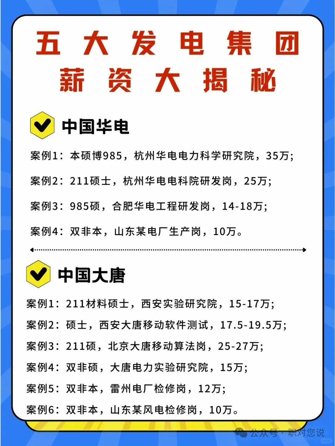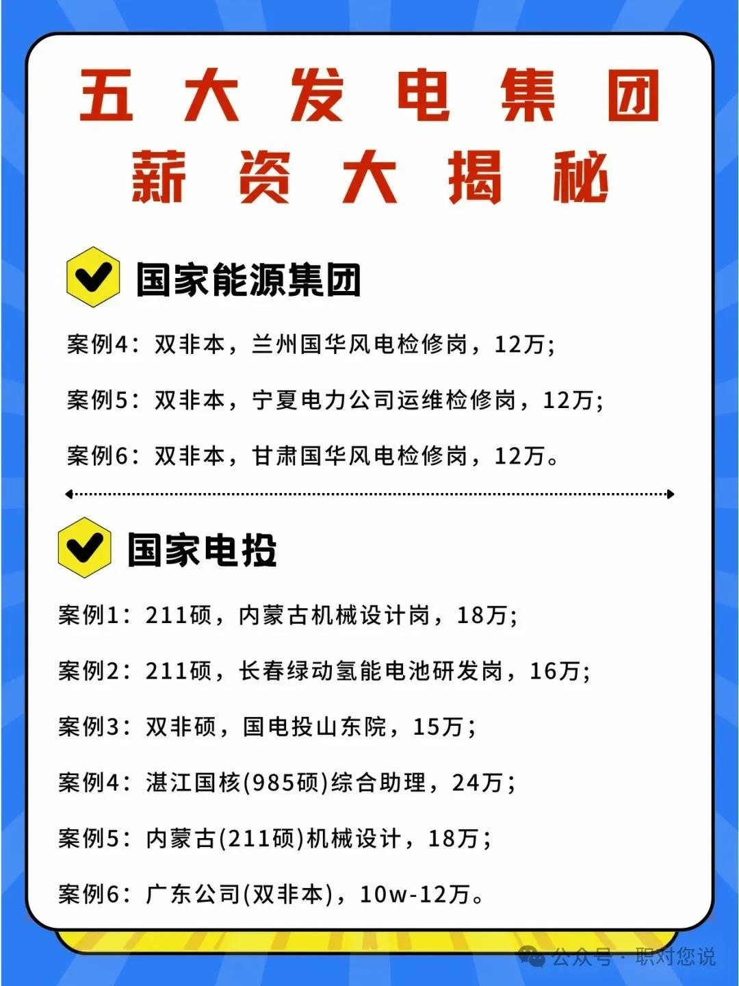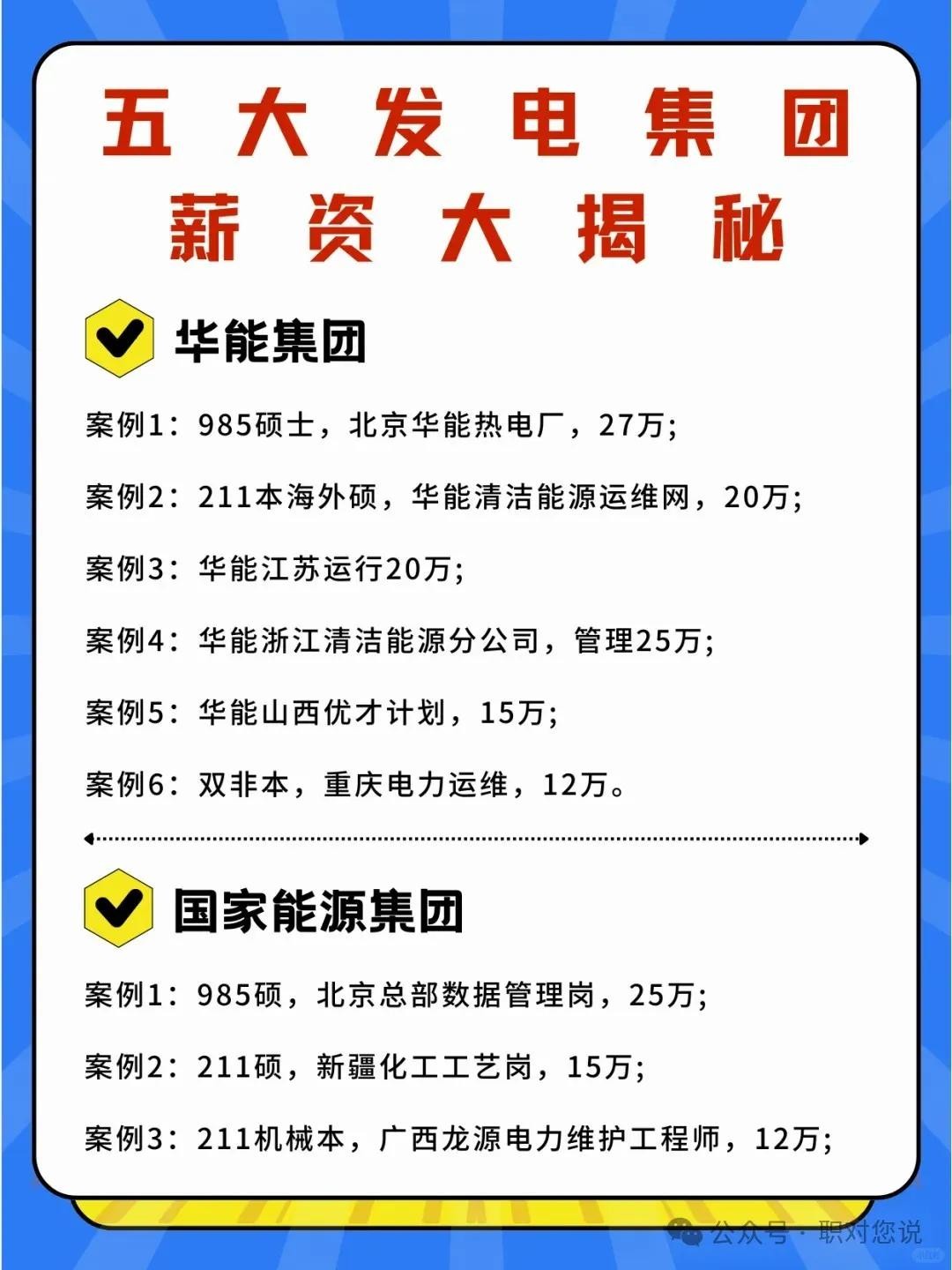 五大发电集团中,华能最好,大唐最差。地方能源中,粤电、深能、京能、浙能等待遇不错。