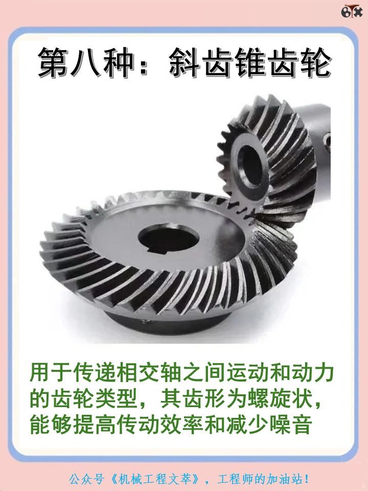 用于传递相交轴之间运动和动力的齿轮类型,其齿形为螺旋状,能够提高传动效率和减少噪音