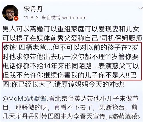 宋丹丹作为一名母亲,看到自己的儿子如此,内心充满了同情。她在自己的著作中对英达进行了批评,并称梁欢为“梁姓女人”,这让任何人看了都感到非常愤怒。