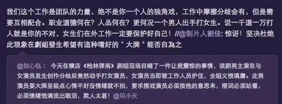 并且在拍摄期间和自己的“老板”边潇潇发生创作分歧后动手打人。