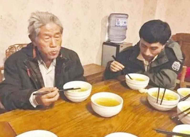 这位老人刚刚坐下,一碗汤面就放在了老人的面前,老人似乎顾不得说些什么,端起来便把碗里的面吃了个一干二净,一碗又一碗,连续吃了七碗,直到肚子里,一口也容不下了,老人才把筷子放下。