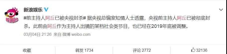 这件事也导致阿丘的人设崩塌,退居幕后,央视这时也并未彻底放弃他。
