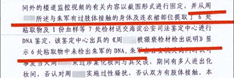 当时的笔录上明明白白的写着,在报警那天的检查中,弦子所穿的衣物上确实只有她自己的痕迹,根本就没有朱军的dna。