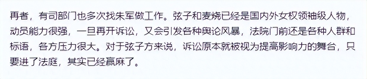 因为许多网友本身还在期待案件的大结局,而朱军的撤诉就仿佛是在向弦子低头,已经妥协了一般。
