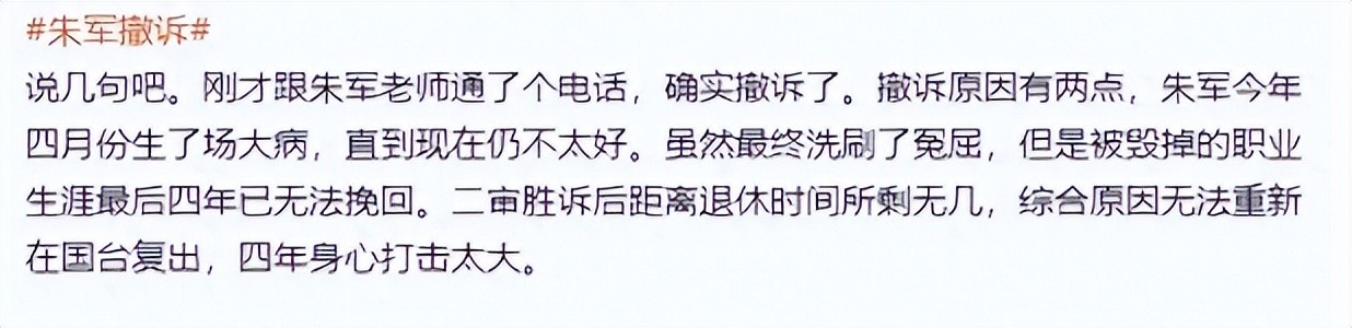 然而,好不容易找回了自己的“清白,朱军却突然撤诉,再次引发了无数网友的猜测:“朱军是不是做贼心虚?”