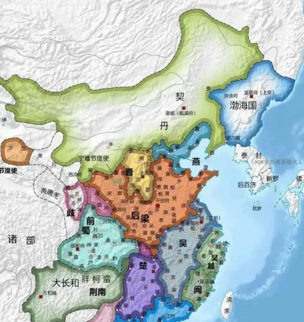 朱温称帝后,各地藩镇都不服气,反对的声音不少。他的儿子还上演了一出杀父即位的闹剧,结果后梁因为家族内乱,没撑多久就灭亡了