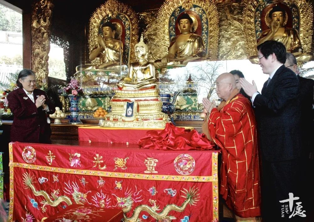 2011年4月12日,传印长老在北京灵光寺接受泰国诗琳通公主赠送的佛像