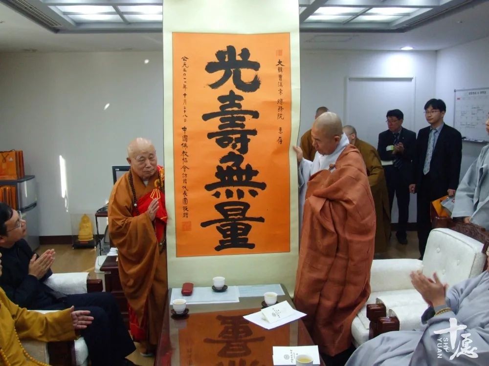 2011年11月8日,应韩国佛教界邀请,传印长老率团访问韩国,为曹溪宗总务院题词“光寿无量”