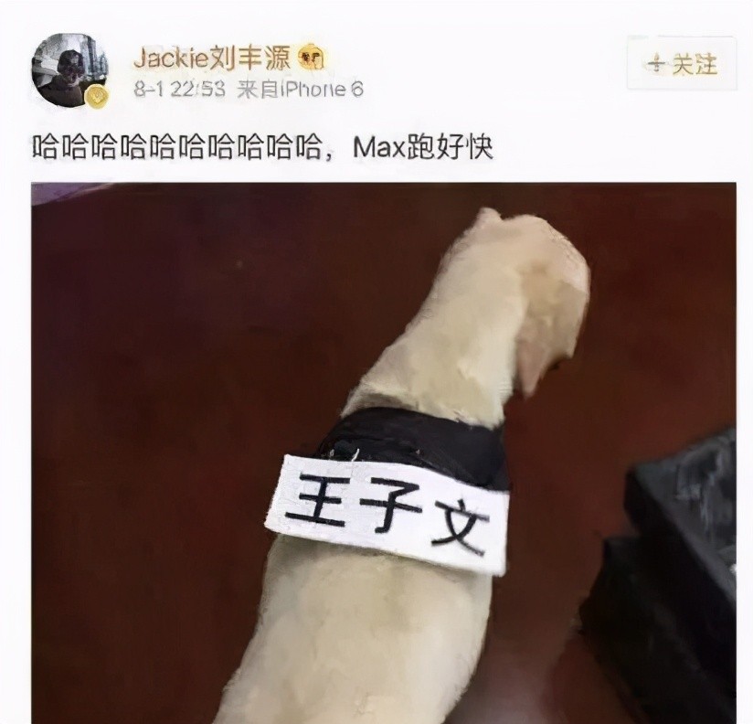 他还在王子文参加《跑男》以后,不忘把她的名牌拿出来晒一晒。