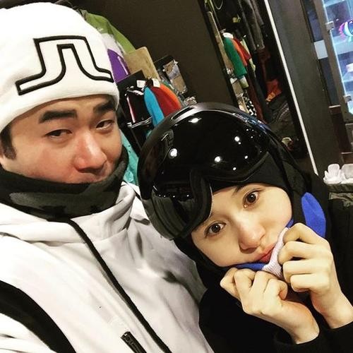他时不时发些两人的自拍,照片中两人满脸笑容很是开心,脸贴脸动作很亲密;