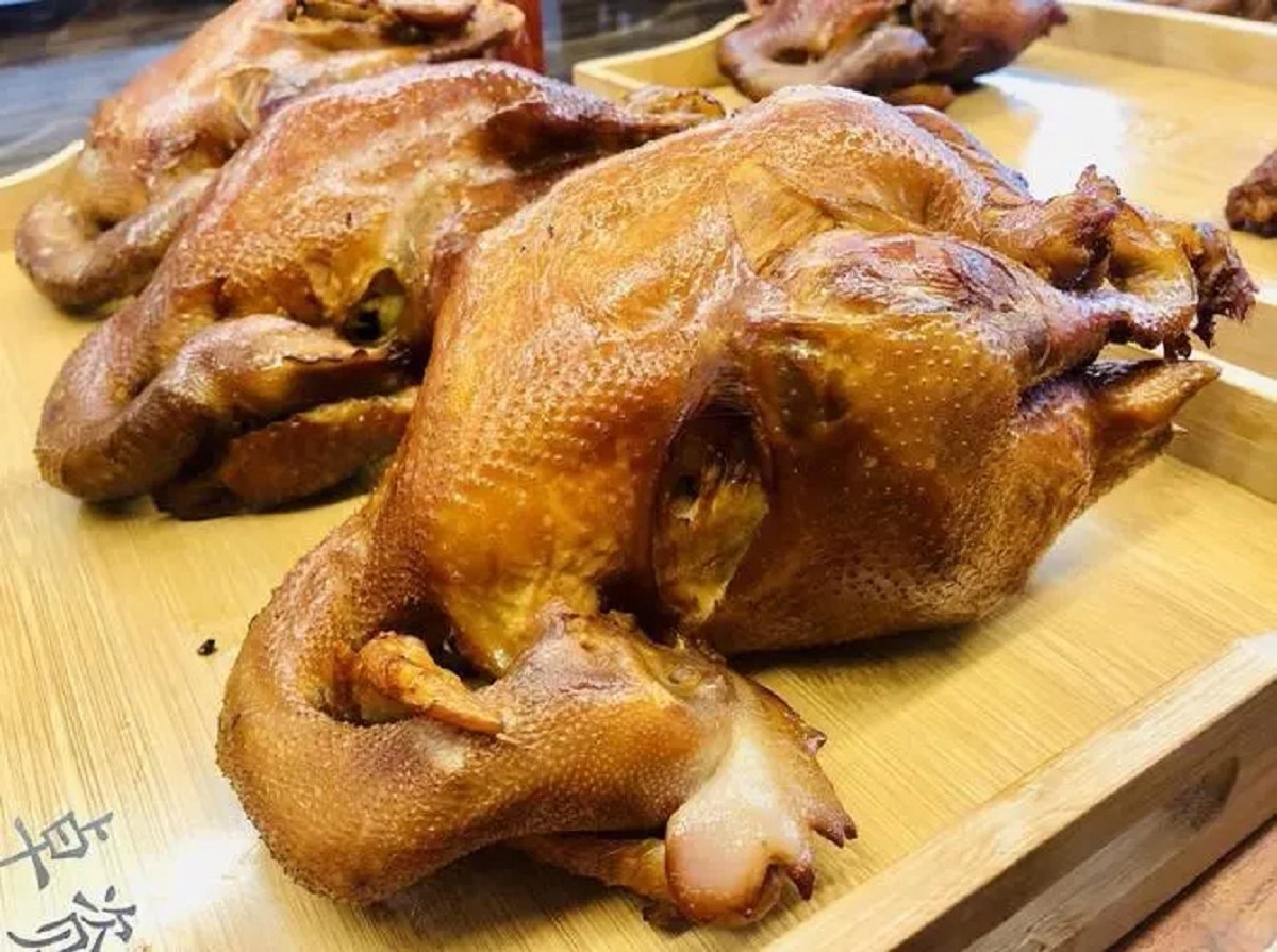 卓资山熏鸡选用卓资山地区本地产的整鸡,经过香料卤煮,在熏制而成的一道美食。这道菜看上去金黄诱人,令人垂涎欲滴,口感焦香软糯。
