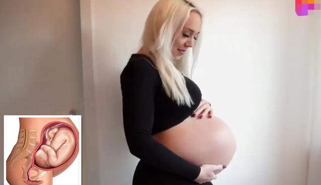 这时候肚子开始下坠,“胎儿入盆”,即将为分娩做准备。