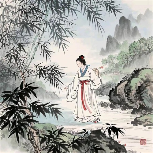 解析:少女故意藏身戏弄恋人,男子焦急等待的憨态跃然纸上,结尾以“匪女之为美,美人之贻”道出爱屋及乌的深情。