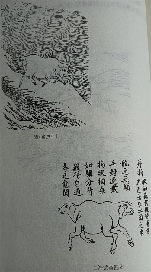 古人认为:“彘”是“猪”的意思,前后都有“猪头”,因此,“并封”这种生物形状如上图。