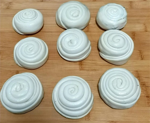 2,做好的饼子生胚,不要立马擀开,要盖上保鲜膜松弛5分钟,再擀很容易擀开,而且还不回缩。