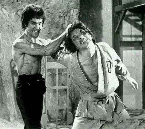 李小龙与武术大师成龙合影,两位功夫巨星相互切磋,共同推动武术事业的发展。