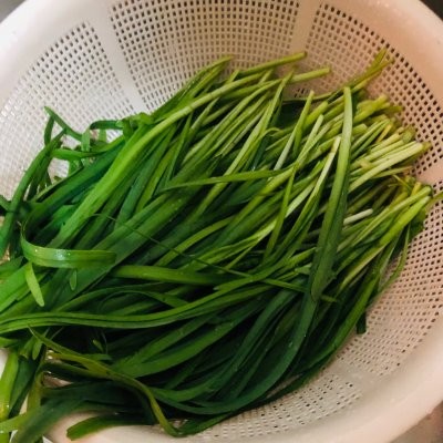 1、韭菜用发财的小手清洗干净,控干水分。 我买一把(3块钱左右)俩人吃两顿,参考建议哈