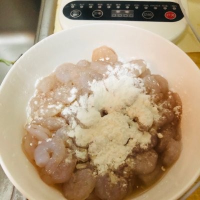 3、虾仁去虾线,小仙女们一定要记住两点关键技巧: 1⃣️虾线在虾背第二个关节处用家里的牙签或者针取出 2⃣️耐心,要足够的耐心 完毕之后反复清洗2~3次,控干放入少许盐、料酒和淀粉抓匀腌制备用哈 虾仁我买的是20块钱的,足够用,最后还多了一部分