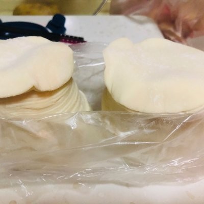 2、饺子皮取出备好,2-4人餐一袋70个左右,大概8块钱上下挺划算的。 我们年轻人一般都不太会和面,因为家里都没有面粉,长辈们这步可以忽略