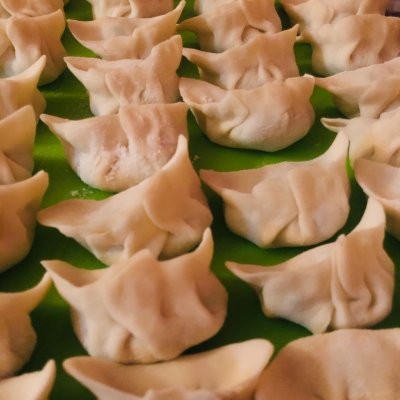 7、接下来正常包饺子就行,一个饺子一个虾仁,吃起来更爽 备注:女朋友包的,我不会,是不是挺爱看