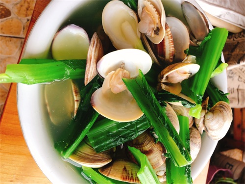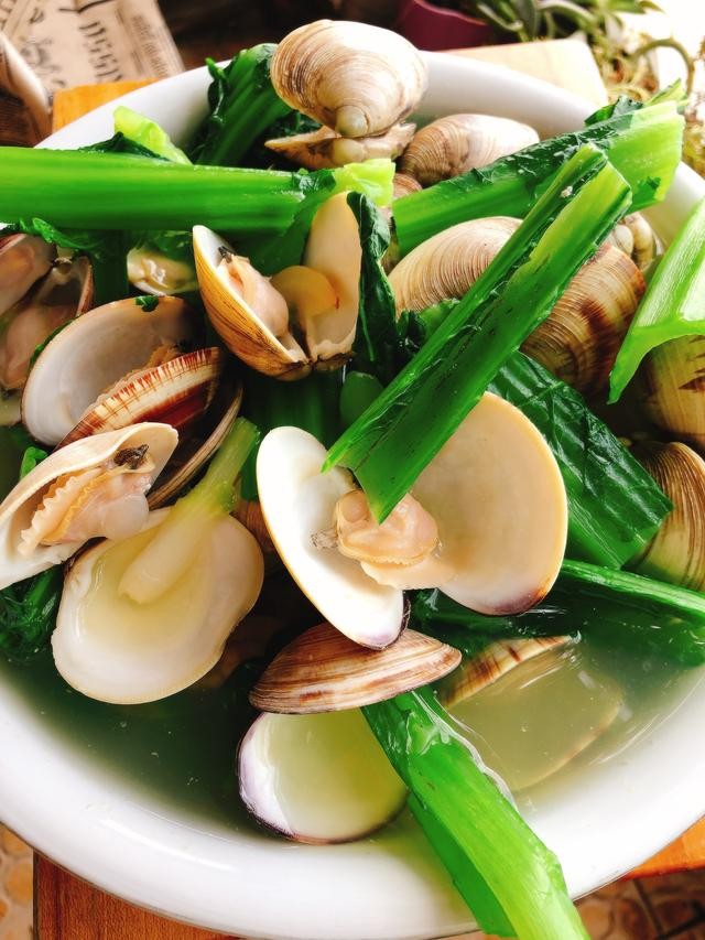 车螺富含蛋白质味道鲜美,芥菜叶绿脆嫩,自带淡淡清香,加上香油调味,吃起来确实令人胃口大开。