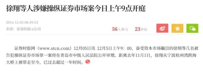 2015年,徐翔等人因涉嫌操纵证券市场被批捕。