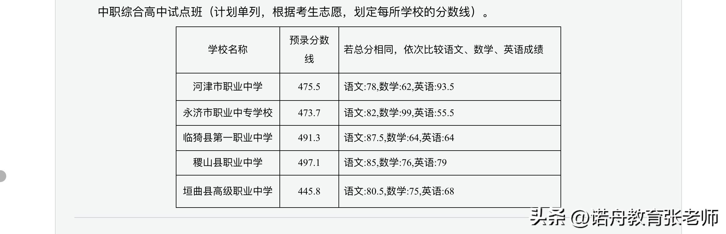(一)普通高中录取最低控制分数线为502分(不含中职综合高中试点班)。