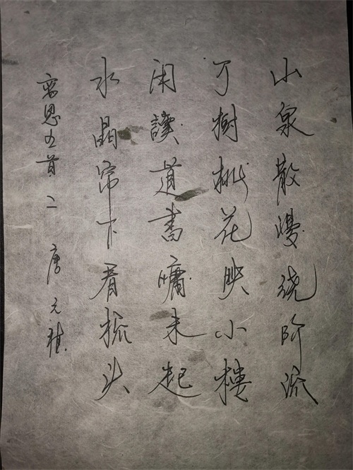 山泉散漫绕阶流,万树桃花映小楼。闲读道书慵未起,水晶帘下看梳头。