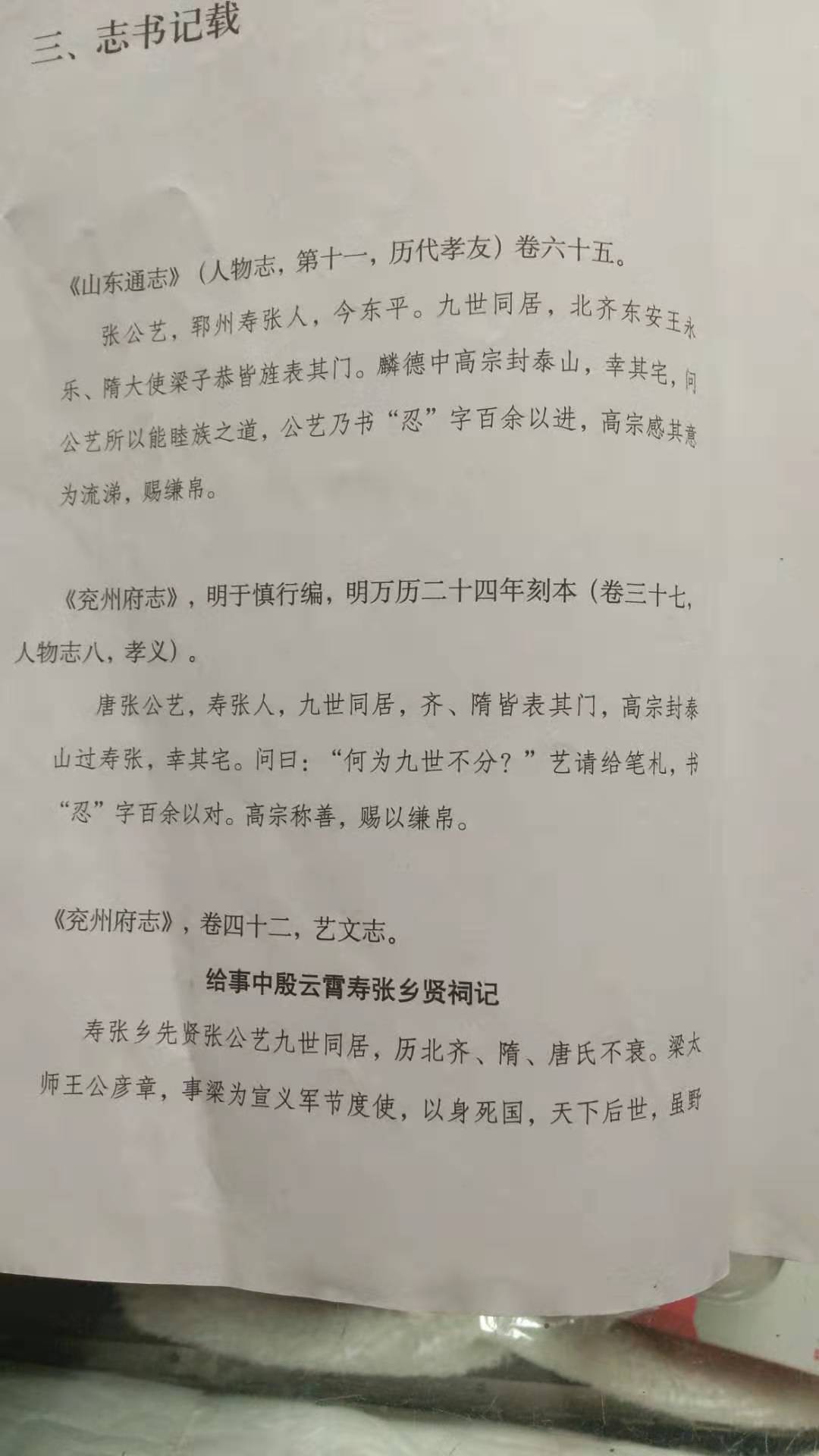 综合所有已知资料,百忍堂九世同居达千口之家,应最少从濮阳太守张次惠算起,这比较符合历史和事实,如果单从张公艺算起怎么也算不出九代千口同居,也不符合代差。资料来自网络,侵删。