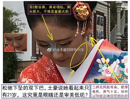 下面这张脸部照片,据说是三妞妈的。有好事者对面相品评了一番,说得很不客气,大意就是不漂亮不高贵。