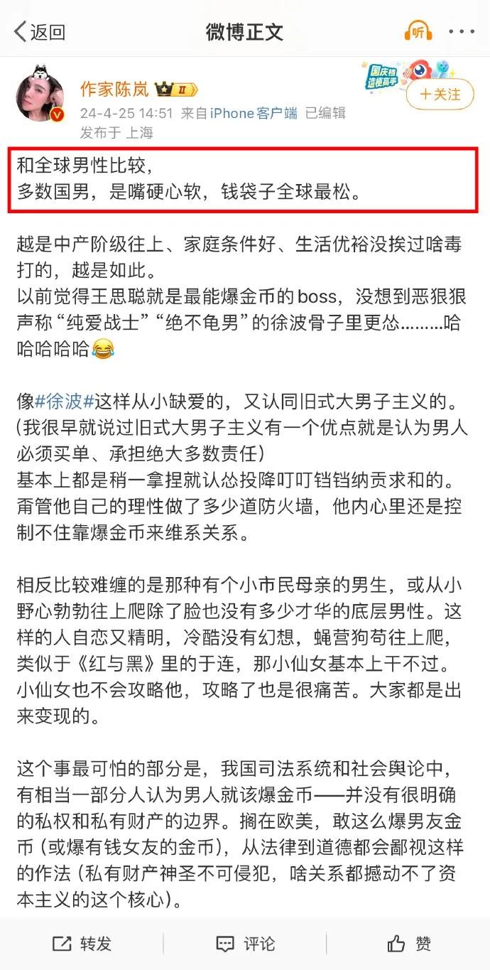 作家陈岚这篇微博分析得很深入了。