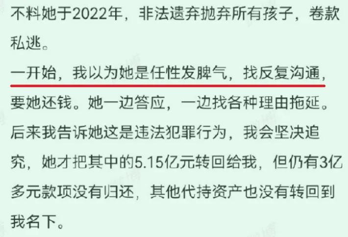 2022年3月,三妞妈不顾煮老师的感受,丢下十几个娃,跑了。跑到日本去了,而且是携巨款潜逃。这笔巨款有多少呢?煮老师说有3亿之多,他晒出的证据大致也能支持3亿这个数字。