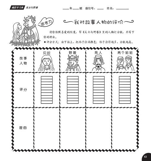 又如,评价《美女与野兽》中的每一个故事人物,并写下理由。