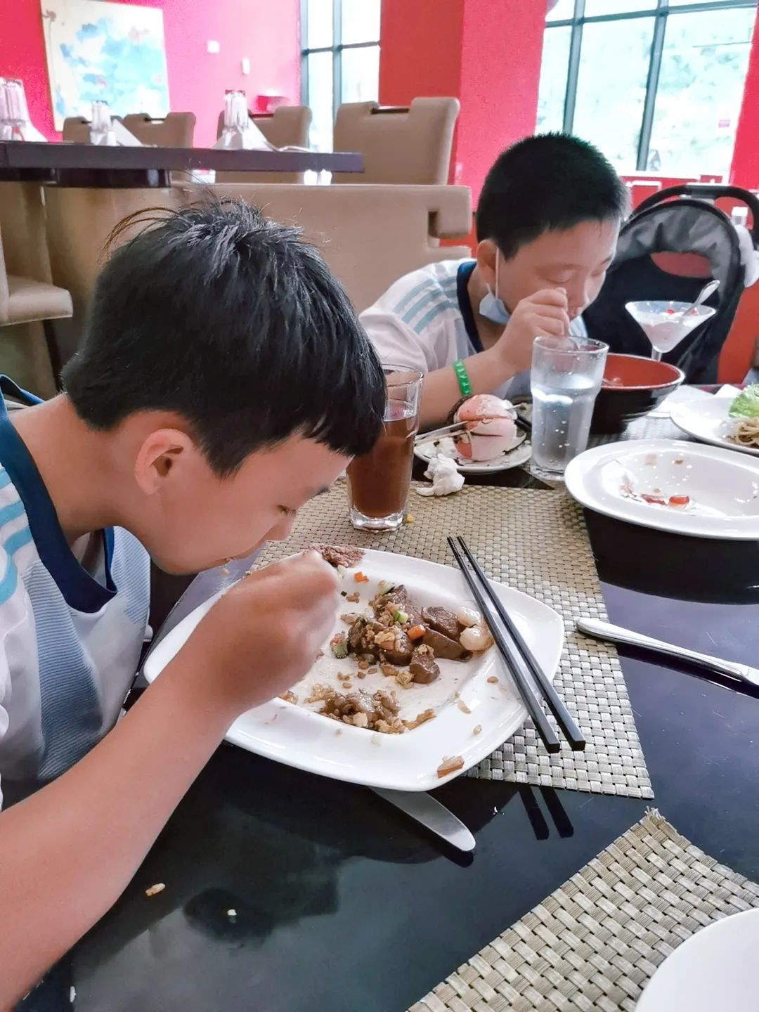 带口罩的男孩子,是大侄子,是不是有点未来赌王风采?