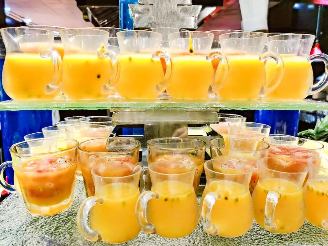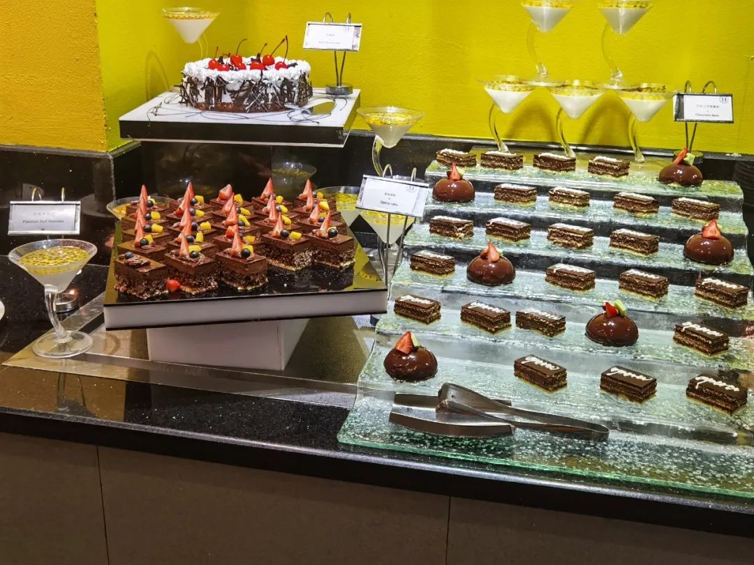 吃的方面,品类较少,不够丰富,胜在甜点和饮料,荤蔬海鲜之类的相对其他酒店自助餐来说比较单一。