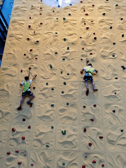 不过这个攀岩,越高挑战难度越高,最后男孩子们好像都没爬到最高点。
