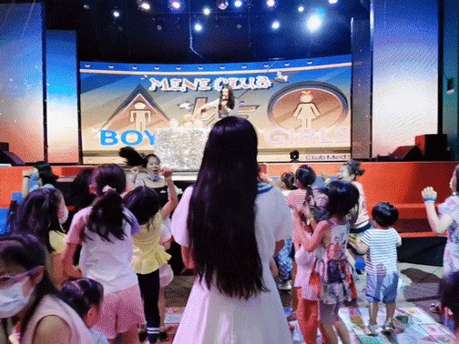 可能是暑假,来的孩子们特别多,每个队伍带队二三十个孩子,由3-4个go小姐负责。