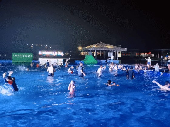 孩子们可坐不住,到房间屁股还没坐热,就换上泳衣跑去泳池玩水了。
